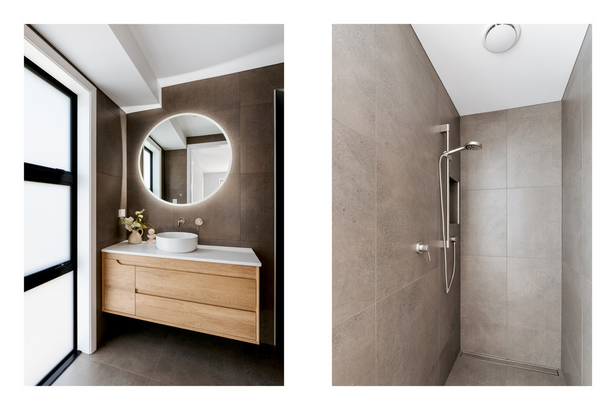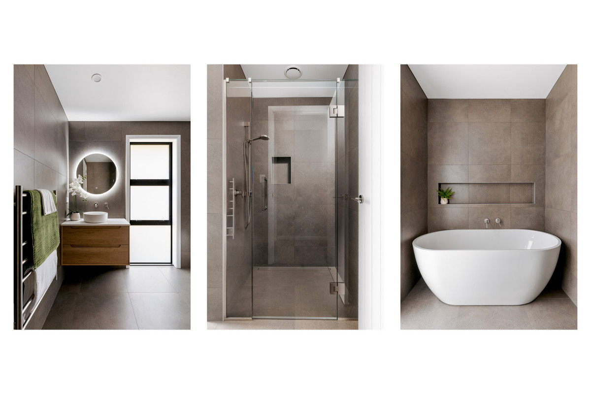 • Resort-inspired bathrooms with bespoke vanities, demister LED mirrors, and floor-to-ceiling tiling