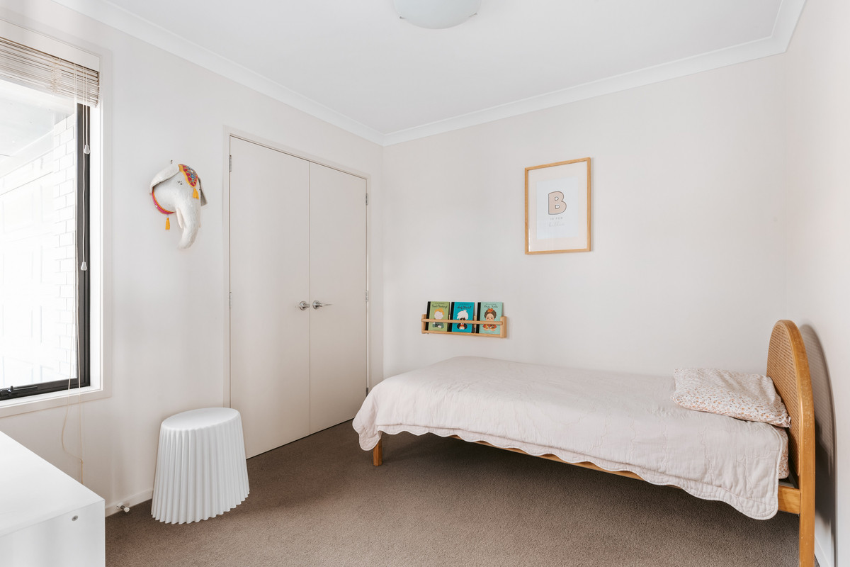 Step inside to a warm, light-filled interior where the open-plan kitchen, dining, and living area provides the heart of the home. The modern kitchen offers a practical family layout — ideal for busy households or casual entertaining. Sliding doors open to a covered outdoor area, creating seamless indoor-outdoor flow for year-round enjoyment.
