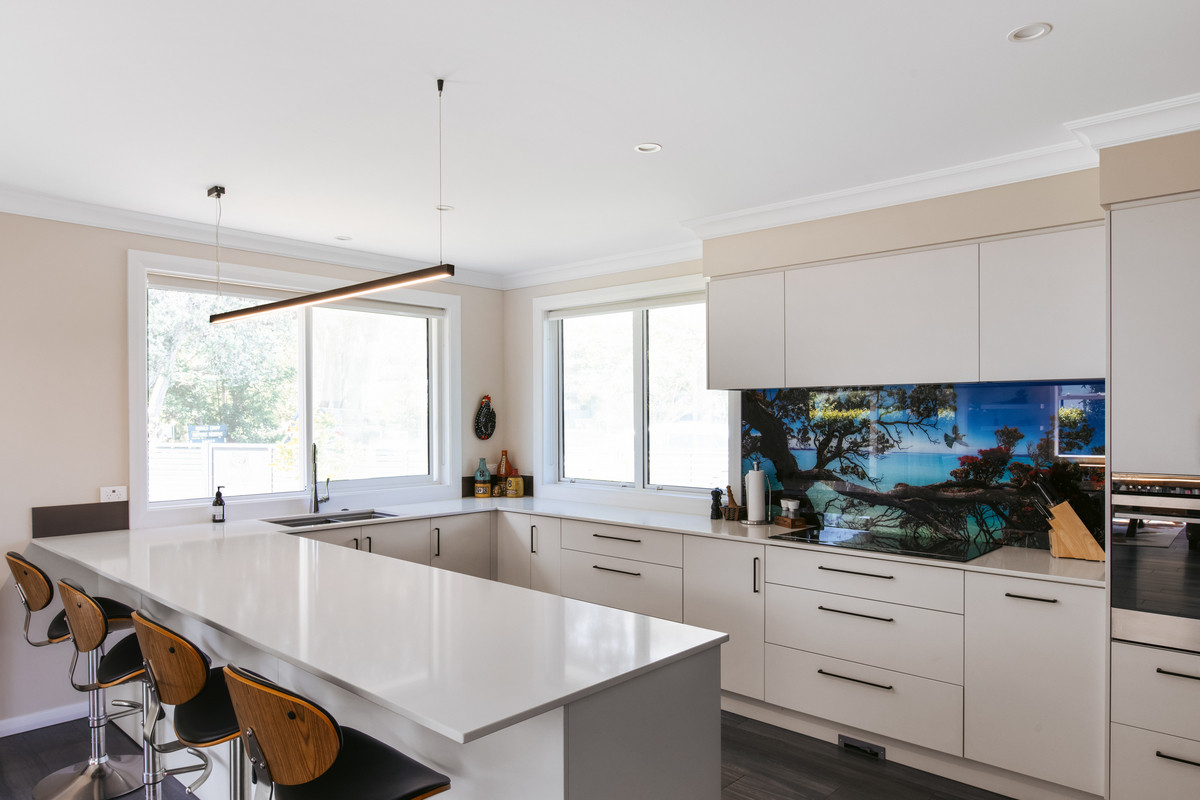 Built in 2018 by Harwood Homes, this two-storey executive weatherboard residence exudes a quiet strength of character — with its timeless exterior and confident, classic design. Anchored by the magnificent pōhutukawa trees of the peninsula, the home captures stunning water views and seamlessly connects to the natural surroundings.